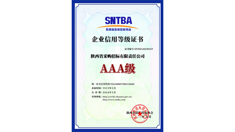 陜西省招標投標協(xié)會2023年AAA企業(yè)